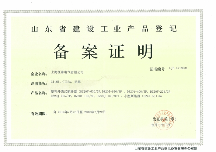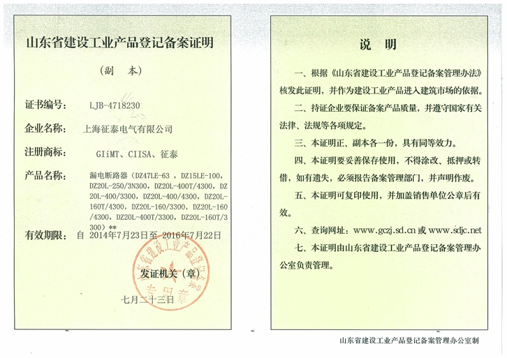 征泰电气企业代号证书